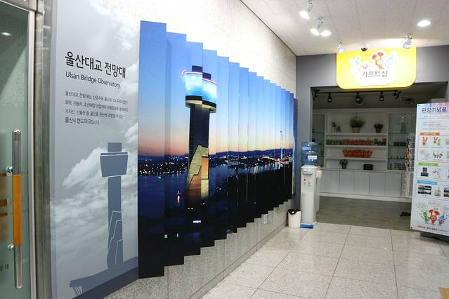 1层的展示馆中,通过照片将蔚山大桥的建筑概要以及和蔚山大桥有关的所有信息展示了出来。另外, 连接从南区长生浦和东区的蔚山大桥以及展望台的模型摆在那里,吸引了不少游客参观。