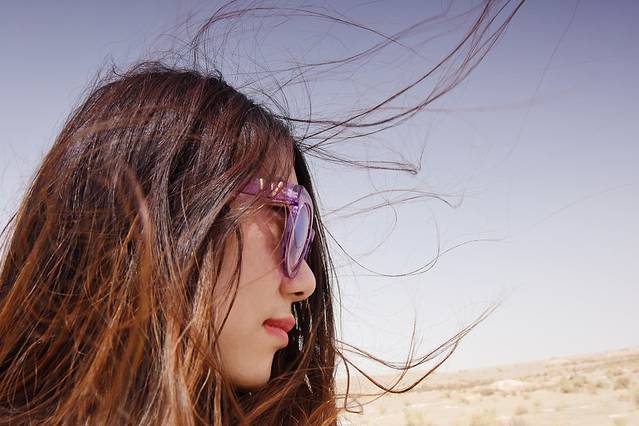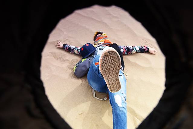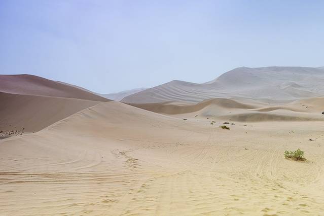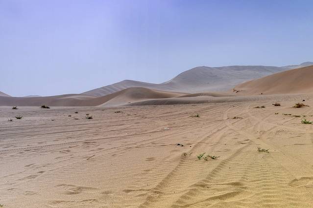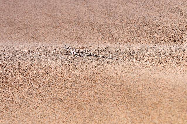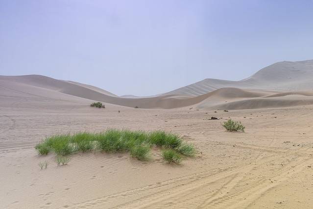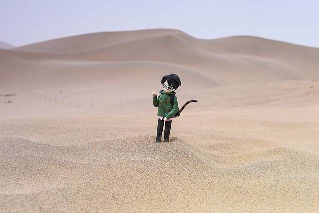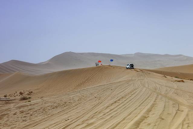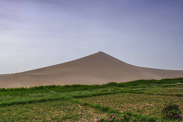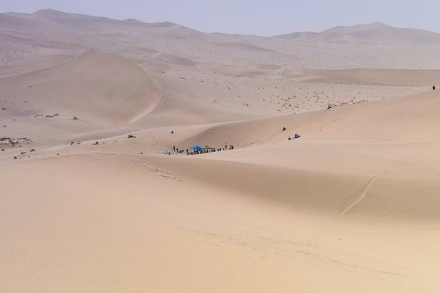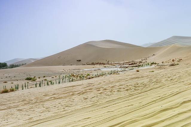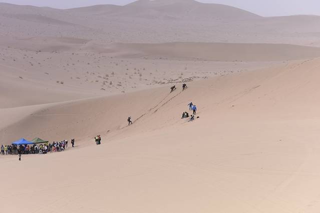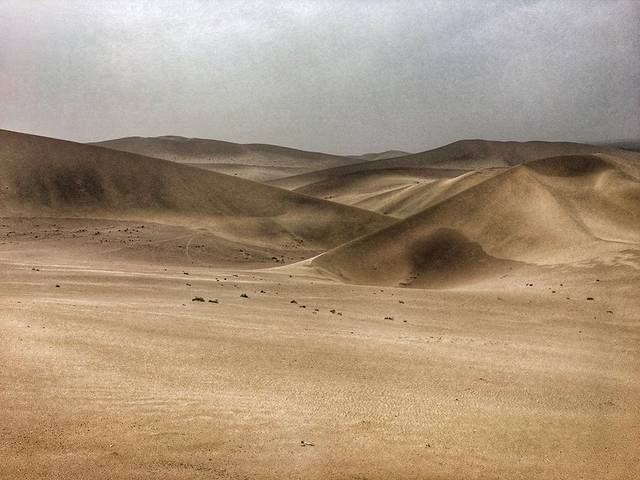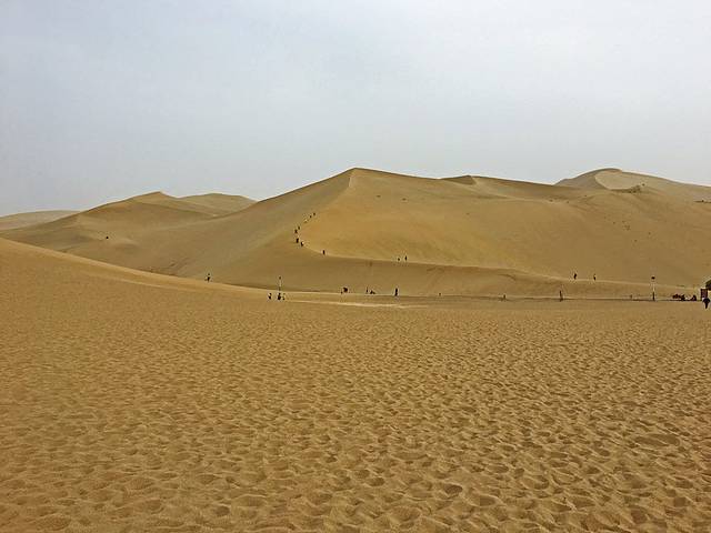 这张照片能看到沙山顶端的沙子被风吹跑的样子,看到这个才知道为什么在沙漠里容易迷路了,只要风一吹,沙的形状果然是会在无意间就变化了~·