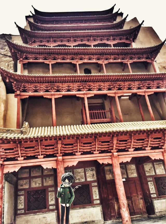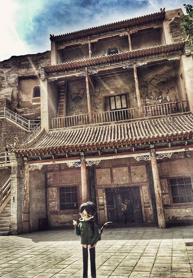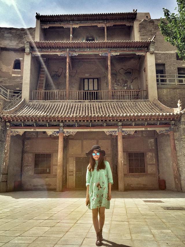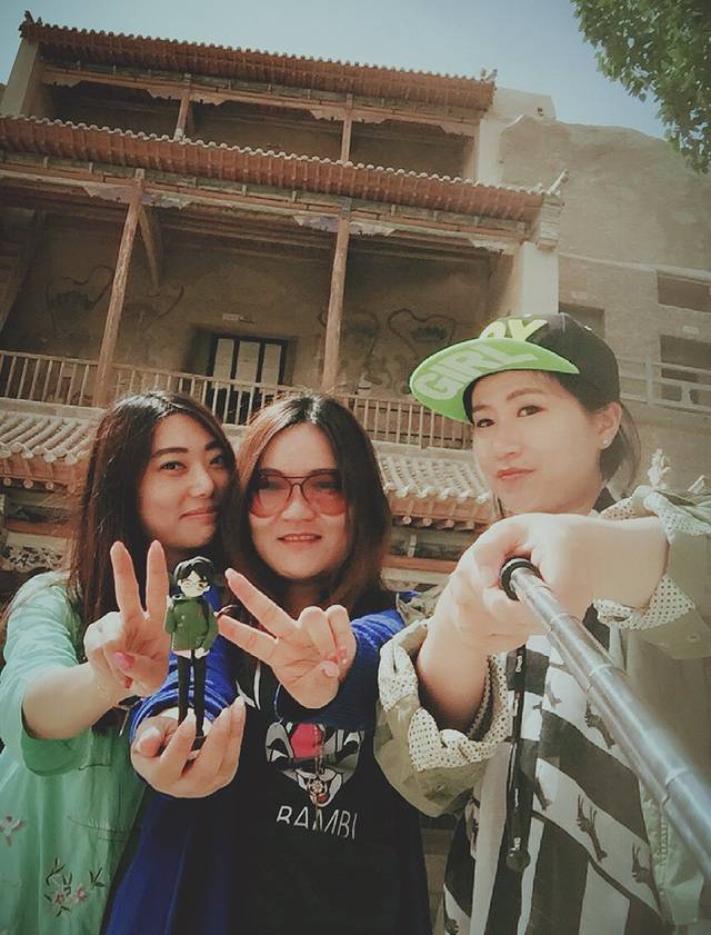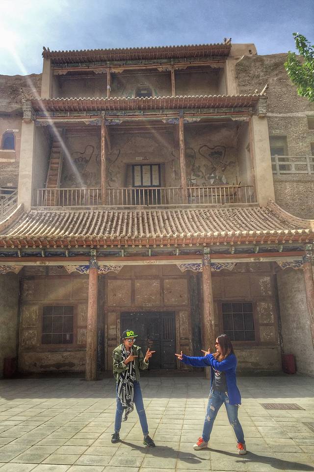 莫高窟里面是不允许拍照的,门口有寄放相机的地方,不过带进去也没问题,只要不拿出来就行~~于是我们在门口就赶紧抓紧时间拍点照~~~