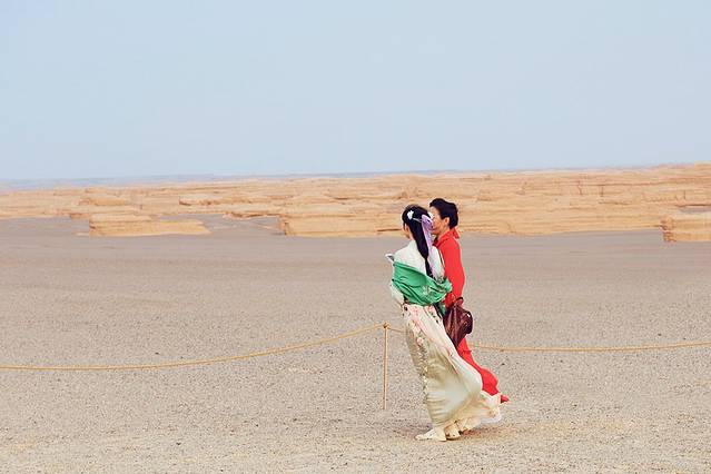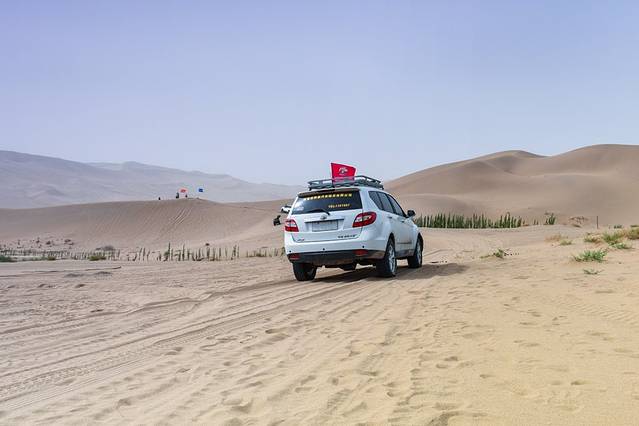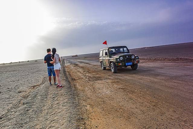 由于敦煌市区非常小,租车公司几乎都是互相认识的,我们的司机师傅和《鬼吹灯》剧组的师傅也是认识的,感谢世界这么小,得知他们第一天拍摄也是在鸣沙山,于是我们决定先去瞄一眼。