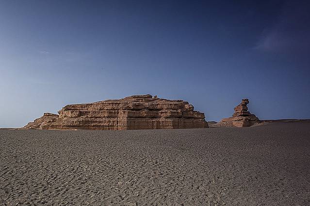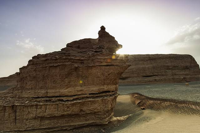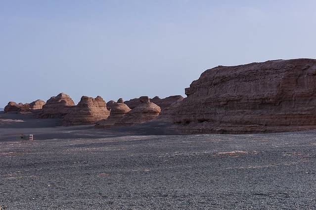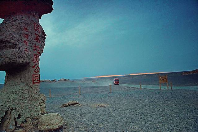 坐景区里的大巴进入魔鬼城,两边都是相似的场景,到了标志性景点才会停下车来让我们自由活动15分钟,而且只能在靠近大路边的区域里活动,不能走远,因为在魔鬼城里极其容易迷路,里面既没有信号,指南针也会失灵,是比较危险的~~