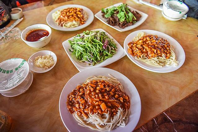 中午我们先回到市区去吃了一顿推荐度很高的驴肉黄面,反正来回路程都不远。