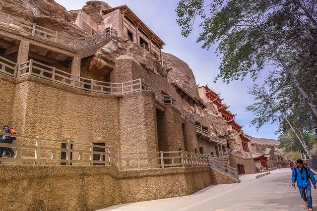 莫高窟的入口处特别的现代化,进去后会先安排看两个小电影,一个是简单介绍莫高窟的行程,还有一个3D环绕电影,主要是介绍了一些比较有特点的窟内的雕像,都很具有参考意义。如果是对莫高窟一无所知的人来说也是在正式参观前一个很好的知识补充。