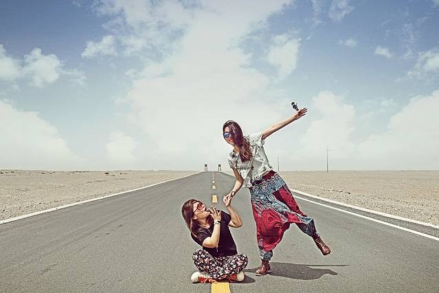 特别好的是,这里不是鸣沙山的主景区,一眼望去没有一个游客!感觉天地间只有我们三傻子,于是怎么拍照,怎么撒野都行,简直爽到不行!