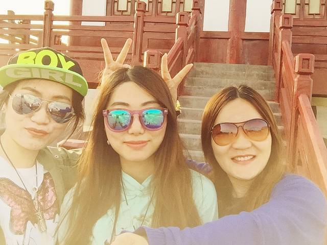 这张合照是我们自拍的,把相机架在包上,设置定时拍摄,我取好景再飞奔回去,速度总是差一点点,自拍不容易啊~~