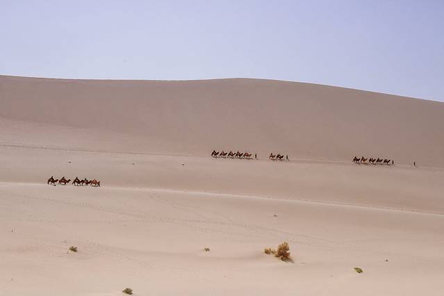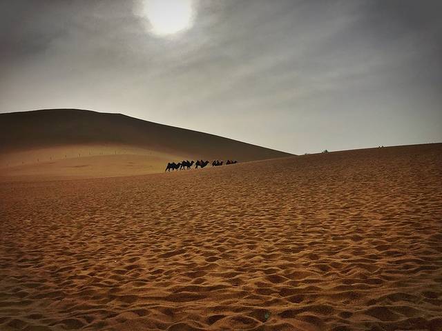 最后再看一眼鸣沙山,月亮已经起来了,驼队都开始往回走了,画面好美,仿佛身在电影里~~