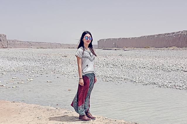 王之涣说“春风不度玉门关”,然而我们走这条路的时候风大到快要把我们卷走了,而且风吹的声音几乎要淹没了我们的说话声~~~当然他的意思不是不吹风,是出了这里就显得荒凉了~~~