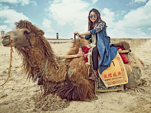骑上骆驼后就没有机会拍照了,两只手一刻都不能放开扶手,要不然摔下来不得了,而且骆驼真的比我想象中高很多,比骑马吓人!我们的带队师傅说可以帮我们拍照,好像是一人收费10元,还蛮不错的。在景区里面经过小亭子的时候也会帮游客拍照,等出门后会有人拿着冲好的照片来卖的,那个好像是一张20吧,相比之下请个师傅比较划算~~