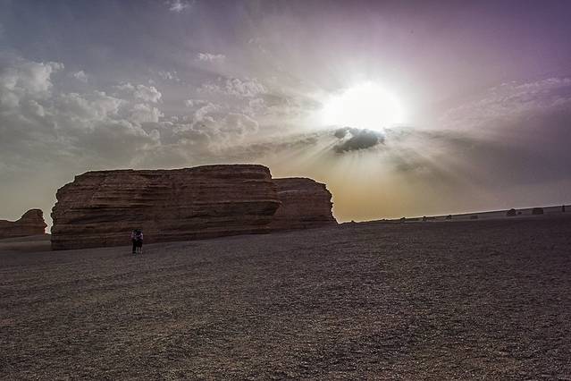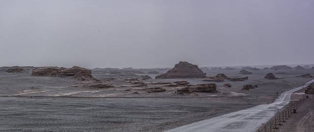 最后我们终于到了雅丹魔鬼城,远远地我就看到了这样的画面,其实已经有些小震撼了,但非常可惜的是那天的天气不好,云层太厚,能见度不高,一般大家都会选择在这里看日落的,可这天的天气恐怕是难了~~