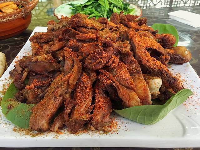 再来分享一下前一天晚上吃的晚餐,好吃的不得了,是在市区那边的一个农家乐集中地,问出租车司机应该都知道~~价格不贵,但是量很大!我们叫一盆烤羊腿,上来后就知道吃不完了,但是味道真心不错,我们把吃不完的打包第二天再吃还是很好吃!