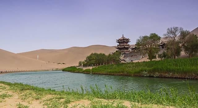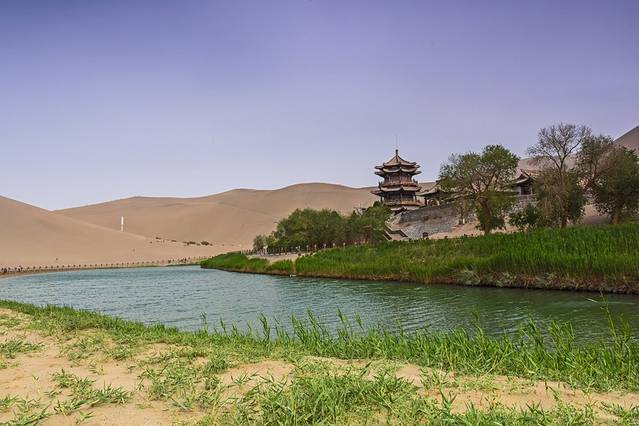 好在我们沿着人多的方向又走了走,这才发现要拐个弯往前走才能看到月牙泉!当我们走在一片沙子里的时候,眼前突然看到月牙泉的时候真的有一种豁然开朗的感觉!那是真的觉得漂亮!其实月牙泉的人特别多,别看我照片很干净,那都是修掉的!我们当时看的时候就觉得人多是唯一的遗憾~