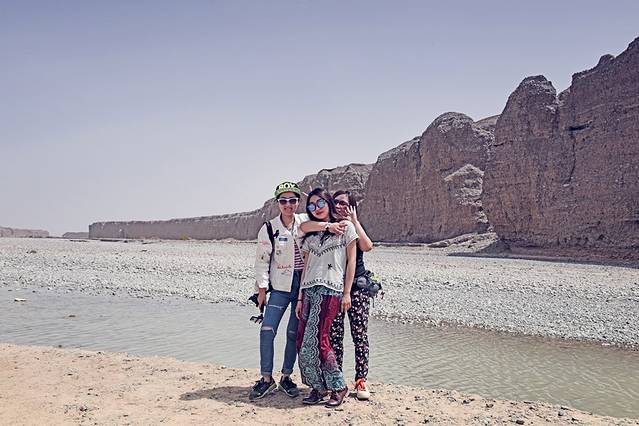 我们戴着摸金符,背着《鬼吹灯》发布会发的小军包合照,风吹的我们毫无形象~~~