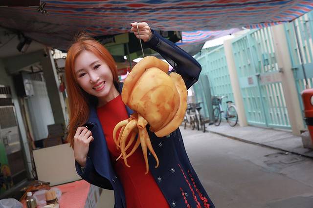 街道两旁不少卖各种鱼干虾酱的小店,这其中也不乏名贵的花胶干鲍,这一条保存了十多年的鲨鱼成为了店里最亮眼的宝物,将风干的海产带回做伴手礼也是不少游客来此的目的之一,在路上一路吃吃买买实在有趣,拳头一般的大颗鱼蛋金黄Q弹,比脸大的章鱼更是第一次见到,大澳的好风光想必城市中是领略不到的。