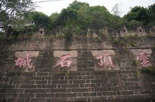 到了地方,师傅叫到了,下车就见四个苍劲有力的大字《云顶石城》。隽刻在山上,俯瞰着滚滚沱江。