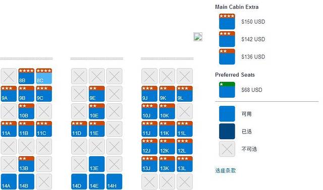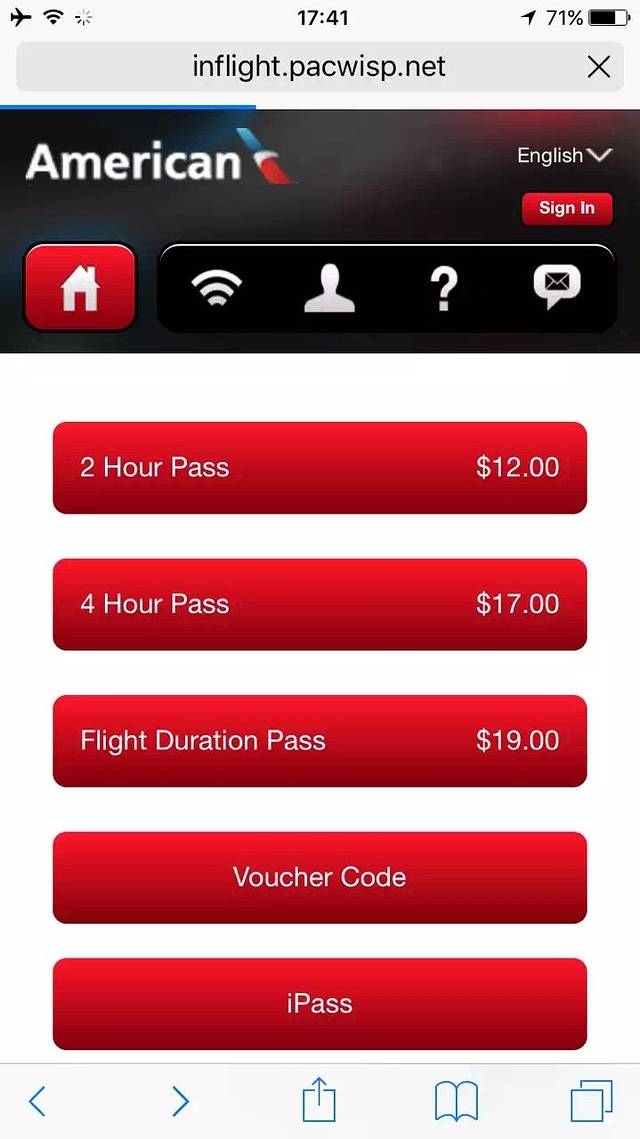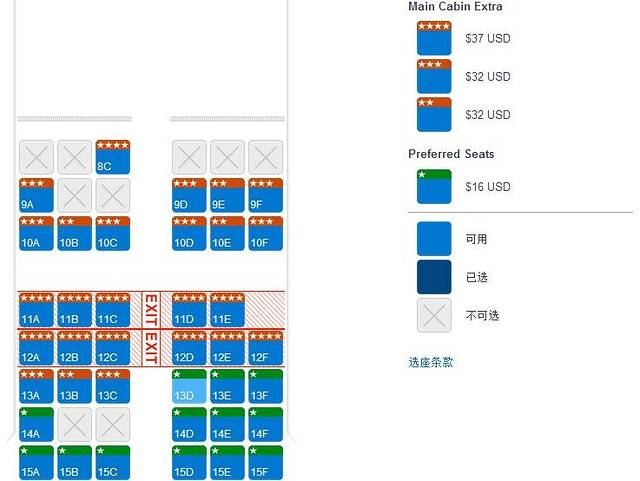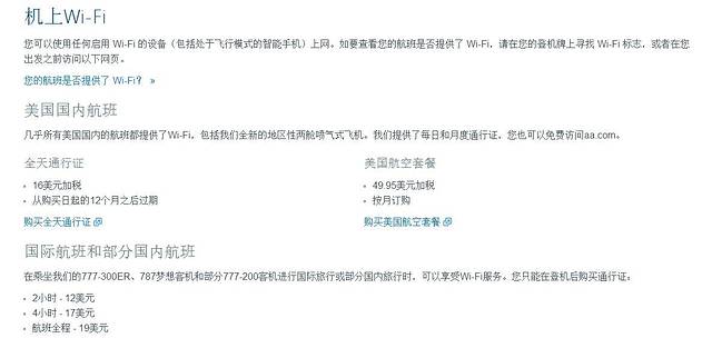 全程美国AA航空:https://www.americanairlines.cn/,中转在达拉斯,每人2件23kg的行李额。美国航空是可以在网上选座位的,不过只开放一部分,但是要想坐心仪的位置,还是要提前预定。靠前的座位因为拥有更宽的空间所以是收费的。另外飞机上提供付费WIFI使用。