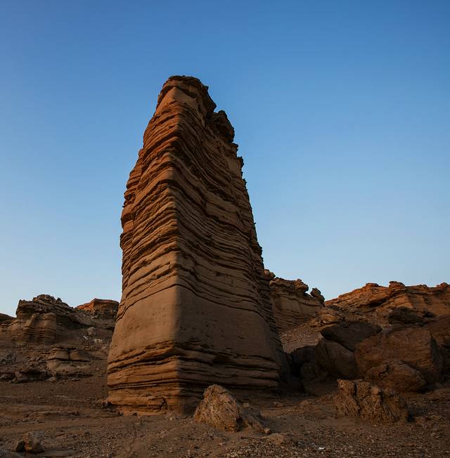 行进在哈密雅尔丹地貌生态公园,就仿佛走进了一座迷宫,黛青色的戈壁瀚海中,一座座宫殿或独处或连成一片,在蓝天白云的辉映下雄伟壮丽!在这里,经过风吹雨水的洗礼,更是孕育了您可以极尽想象的各类美景。