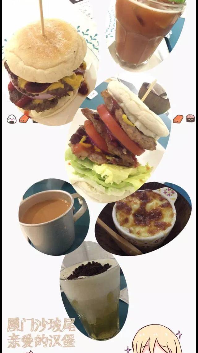 厦门的月华沙茶面、花生汤、林氏鱼丸,强烈推荐!还有在厦门读大学的朋友带我们去的沙尾坡的一家汉堡店:亲爱的汉堡!三层一口吃不下,虽然吃得狼狈,手上嘴边都是酱汁,但是味道好极了!