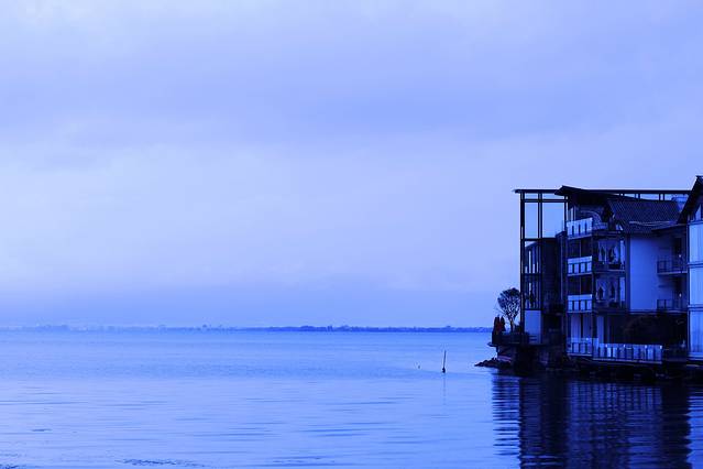 夕阳下,洱海边的玻璃阳台,现在看照片竟有点“通往天堂的阶梯”的感觉