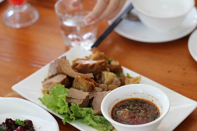 忘了名字的肉,沾上这碟秘制辣酱,出奇美味