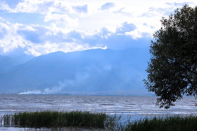 在第一个观景台下车近距离观赏洱海,远处是若隐若现的苍山,洱海中央还有一些美妙的树木,连呼吸都变得蔚蓝起来