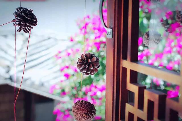 当地人说这个花生命力特别旺盛,每年春天一到便如期绽放,一直开到秋天,梅红色花朵的艳丽跟丽江古建筑木色的质朴,搭配在一起如此美妙~