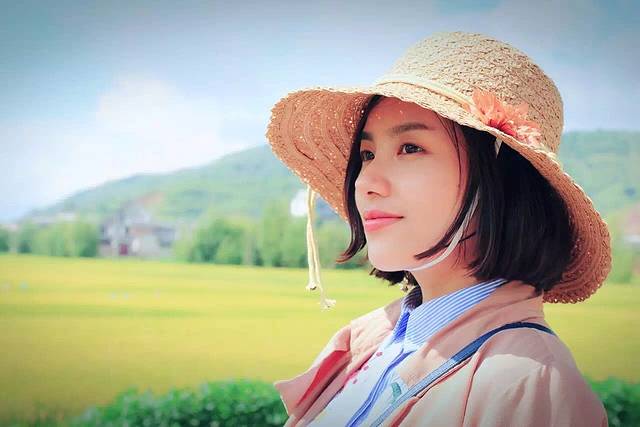 在金黄色的田野边,右眼满目金黄,左眼一片蔚蓝,美的惊艳又温柔