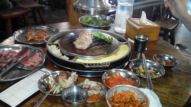 坐了6015大巴,10000w一人1小时多就到了。还是不敢相信这就是韩国!先去吃了明洞的古宫。60RNB