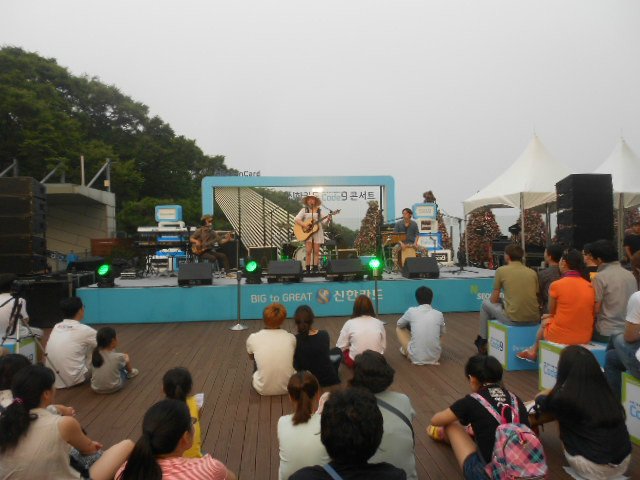 正好有人在演出,唱小情歌还满好听的。