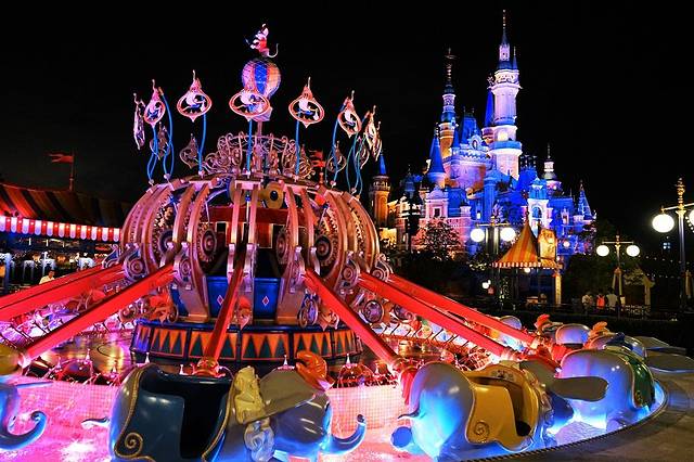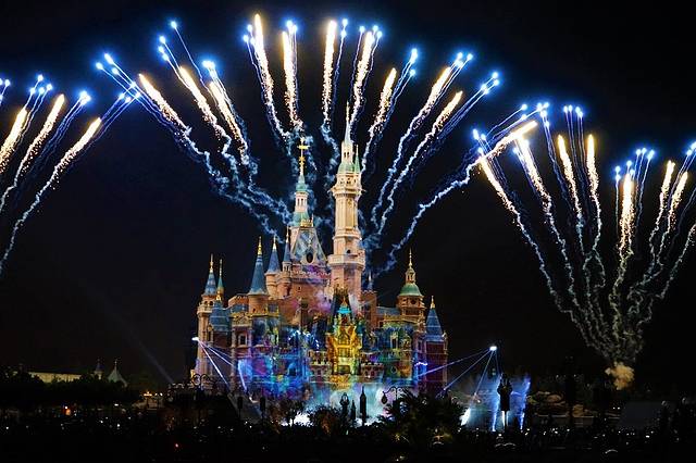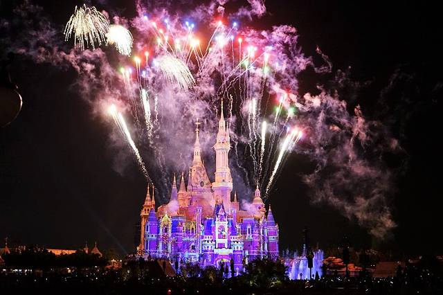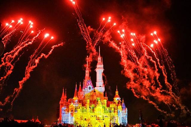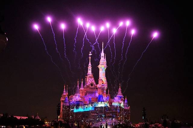 每个迪士尼乐园夜晚的烟火秀,都是不容错过的压轴大戏,绝对是震撼视觉和听觉的奇幻盛宴。五彩缤纷而又绚烂夺目的激光、投影、与烟火交织交错,混合着激荡人心的音乐和歌曲,在漆黑的夜空里,点亮所有人心中的奇梦,直到时钟提醒你落幕的时刻。一定要早去找个好的位置,一定要早去,一定要早去,重要的事情说三遍。
