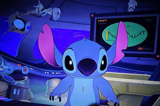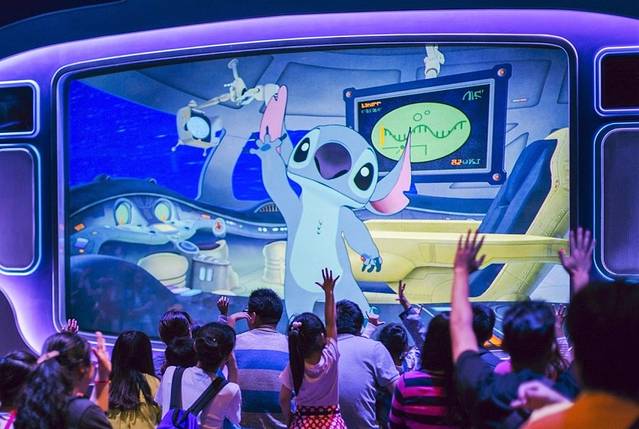 如果说园区里有什么并非热门但却给人惊喜的项目,那么太空幸会史迪奇绝对排的上号。史迪奇,这个呆头呆脑的蓝色小怪物很快就和现场的大朋友、小朋友打成一片,聊天、讲笑话、玩游戏,而且喋喋不休,就好像是岳云鹏的单口相声会一样,笑料不断。如果你带来学龄前的孩子,一定要去感受一下,不用排队,笑到抽筋。