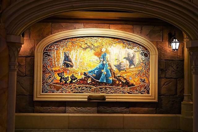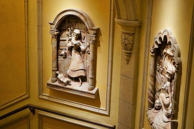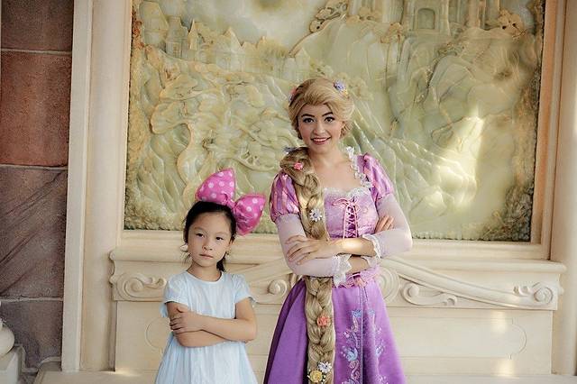 迪士尼城堡永远是迪士尼的标志和中心,城堡里的壁画定格了经典的场景,灰姑娘,长发公主、贝儿公主和白雪公主会定时的出现在城堡里,和你合影,和你分享。也许公主太漂亮了,女儿可能有一点点的小嫉妒,表情有点小严肃。