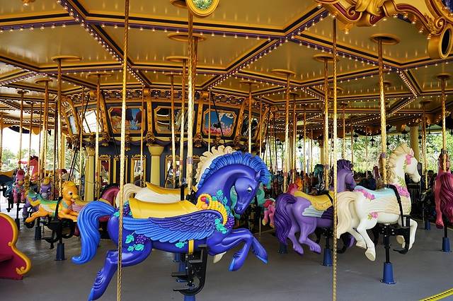 千万不要以为普通的不同再普通的旋转木马可以随到随玩,从开园到闭园,都在排队。毕竟,旋转木马是很多小孩子童年的记忆,特别是挑选木马时的乐趣,女儿也不例外,即使排队,也必须旋转一下。