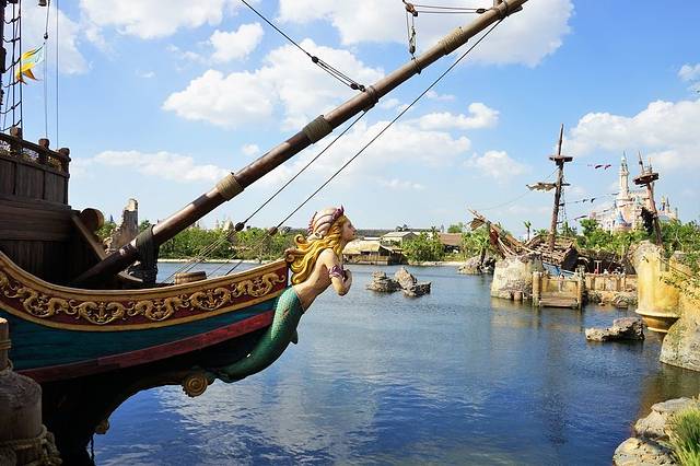 探秘海妖复仇号是一艘充满传奇的海盗船,如今静静的停靠在旱鸭子码头,高耸的桅杆和船头的美人鱼,让这艘船越发显得诡异。