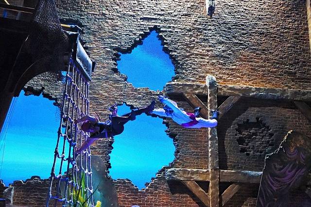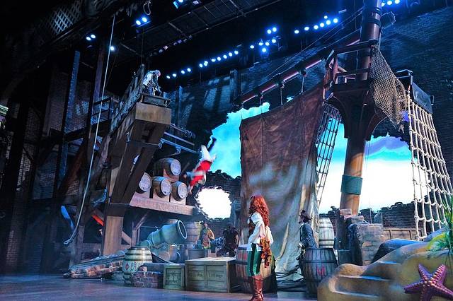 惊险的海盗大战刚刚落下帷幕,杰克船长的惊天特技大冒险就在凡迭戈剧院上演了。英国皇家海军在舞台上对杰克船长展开了抓捕,整个剧场陷入了一片令人捧腹的混乱之中。海盗、水手和卫兵们在舞台上激烈厮杀,以惊人特技上演英勇决斗。灯光烟雾、炮弹吊绳、高空坠落、飓风悬浮以及惊险而嬉笑的剧情,让现场一片惊叹,真心推荐哦。