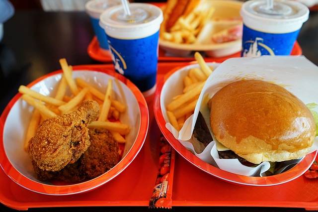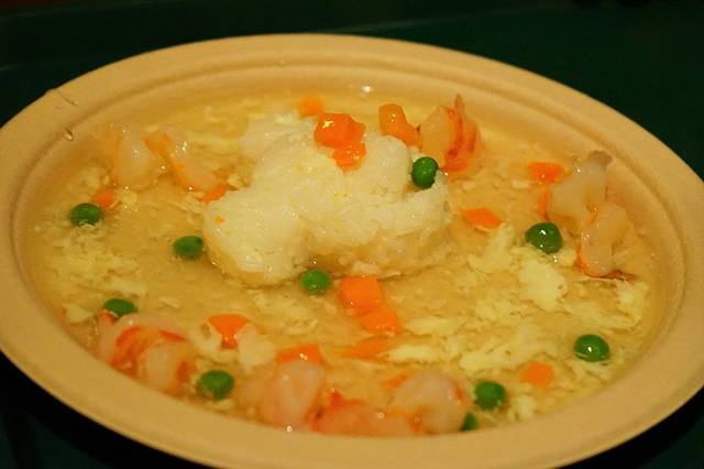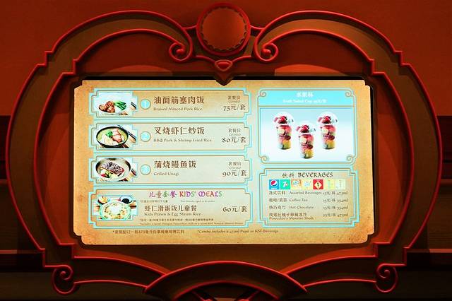 尽管贵,尽管口味一般,那也逃避不了在迪士尼吃午餐和晚餐。迪士尼城堡傍边的仙女教母妙味餐厅有中餐(盖浇饭)和西餐(披萨)可选,其实选哪个都是一样的结果:一声叹息。不解释,直接上图。