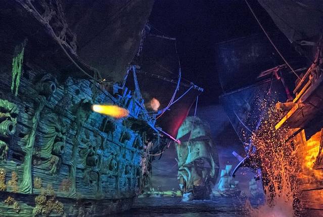 想知道杰克船长的起居生活吗?想和杰克船长一起掠夺海底的宝藏吗?想在宝藏湾经历一次惊心动魄的海盗大战吗?加勒比海盗沉落宝藏之战绝对不容错过。乘上船,在幽暗的洞穴、或是漆黑的海底,屏住呼吸,战斗一触即发!炮声隆隆的氛围里你只听得到凄惨,也许尚未拔剑,却以深陷战火,爆发吧你的小宇宙,加入杰克船长的队伍一起战斗...也许,下辈子,你真的想做一名海盗...和东京迪士尼一样的游乐项目,却融入了更多高科技的元素。老少皆宜,真心推荐!