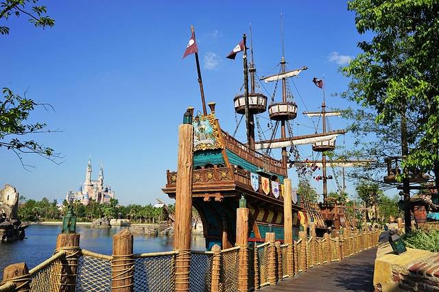 迪士尼一开园,人们争先恐后的第一站基本都是探险岛,一是距离近,二是探险岛上有飞跃地平线、雷鸣山漂流、加勒比海盗几个亮点游乐项目,三是探险岛上可以FP飞跃地平线和雷鸣山漂流。说实话,FP也要排队很久,如果开园去,建议带孩子的家长可以直接排队飞跃地平线或雷鸣山漂流,我们就是这样,不到八点半就已经享受过了飞跃地平线带来的震撼。
