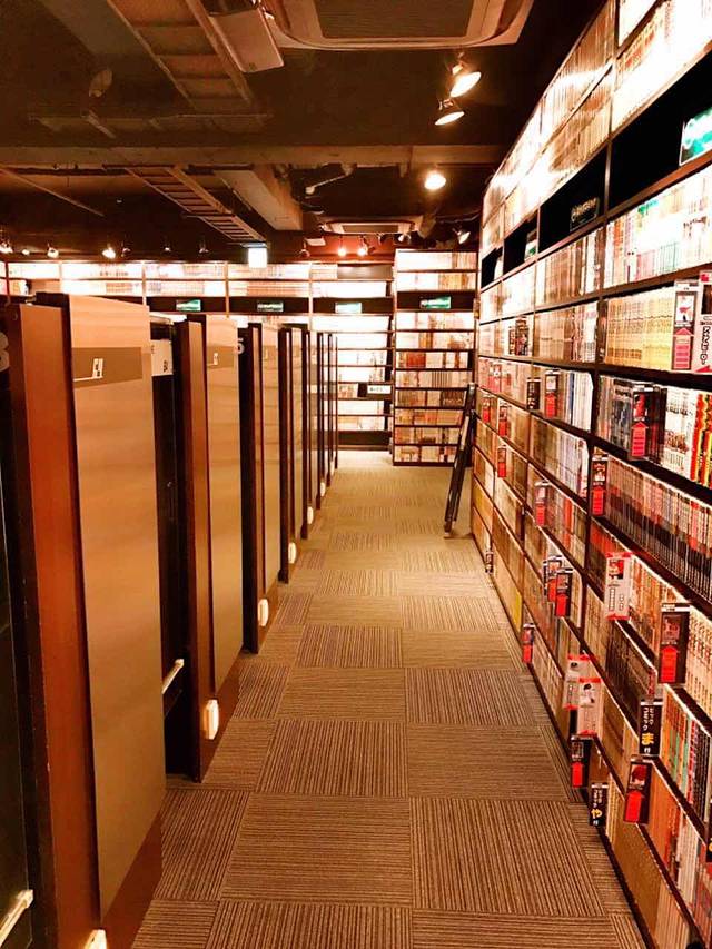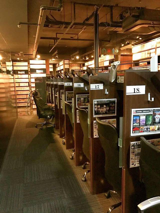 大厅里半封闭的隔间是最便宜的,提供一个位置,一台电脑,免费的咖啡和饮料,以及店内所有漫画书可以随便看。