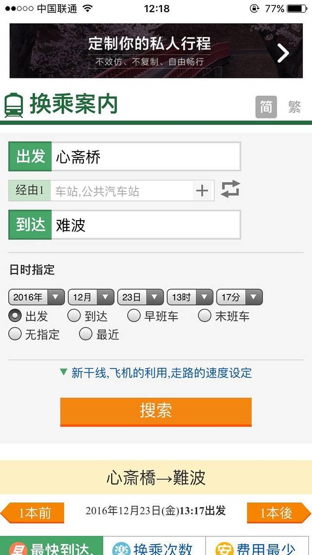 日本换乘:也叫换乘案内,有中文版。日本同学推荐的,很好用,但是一开始我不会用,所以以血泪教训换来下面的讲解,具体说说怎么用不然真的会迷失在错综复杂的地下车站里的。(来自一个晕到怀疑人生の女孩之告诫)