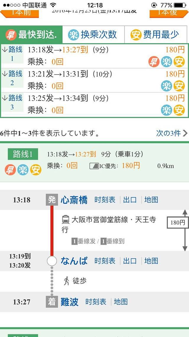 注意心斋桥下面那个车的小图标(电车,巴士,地铁什么的图标是不一样的)