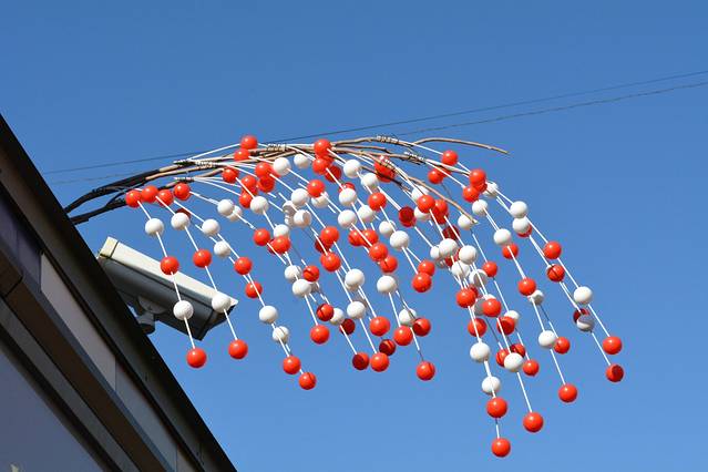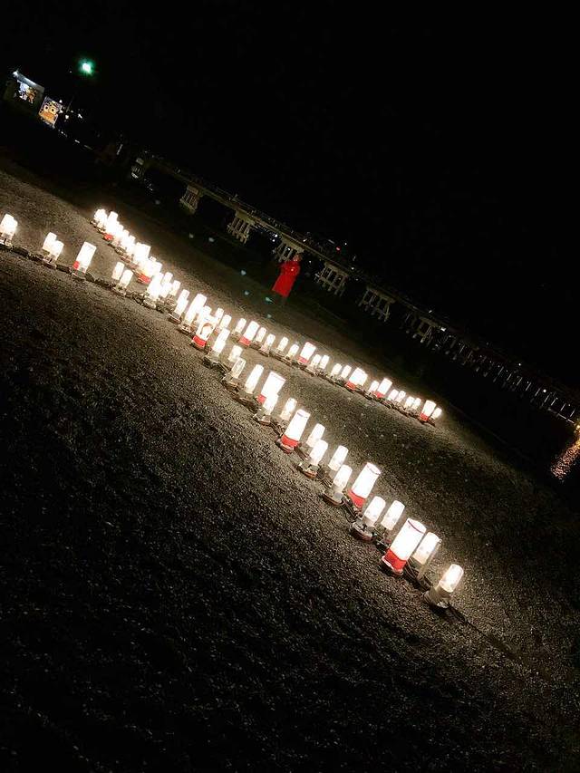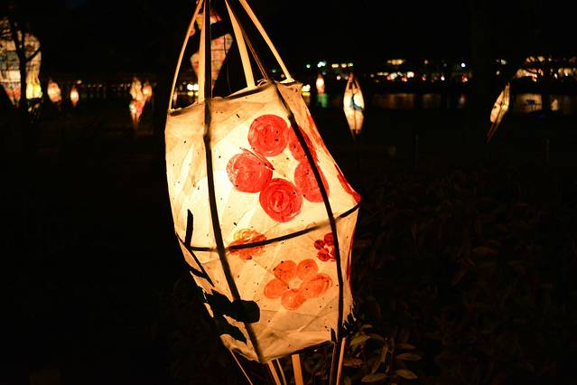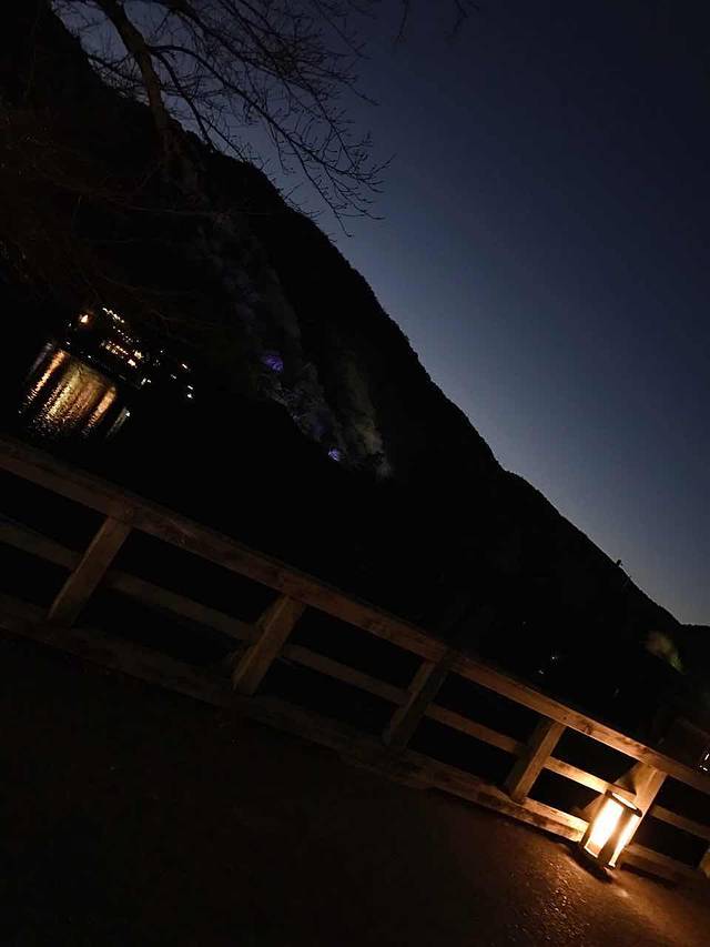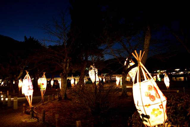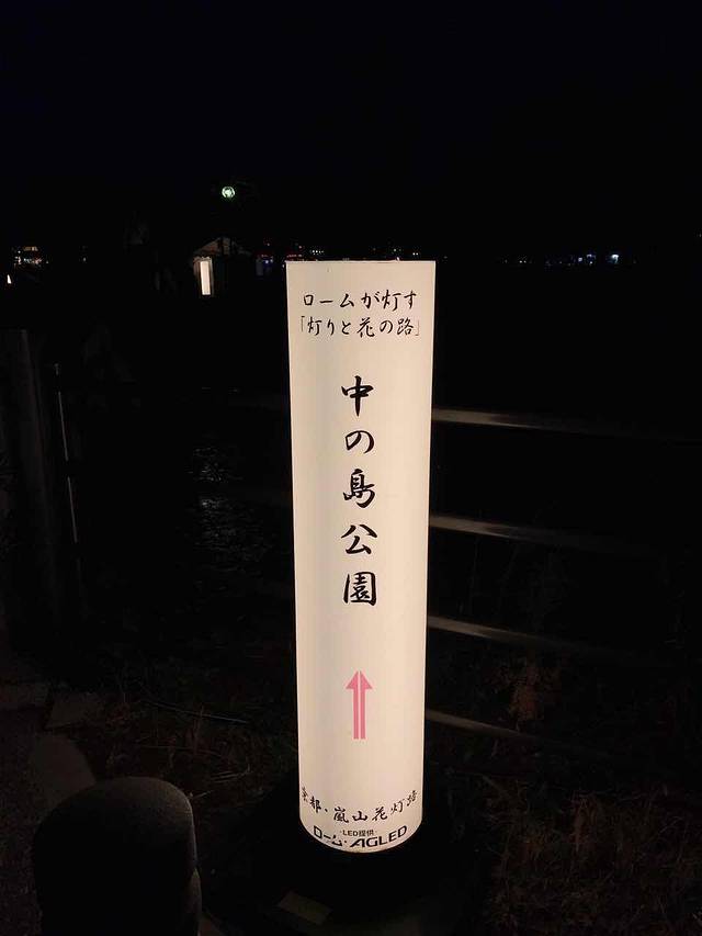 过了桥,人流渐渐多了起来。跟着人流寻找岚山的花灯路。