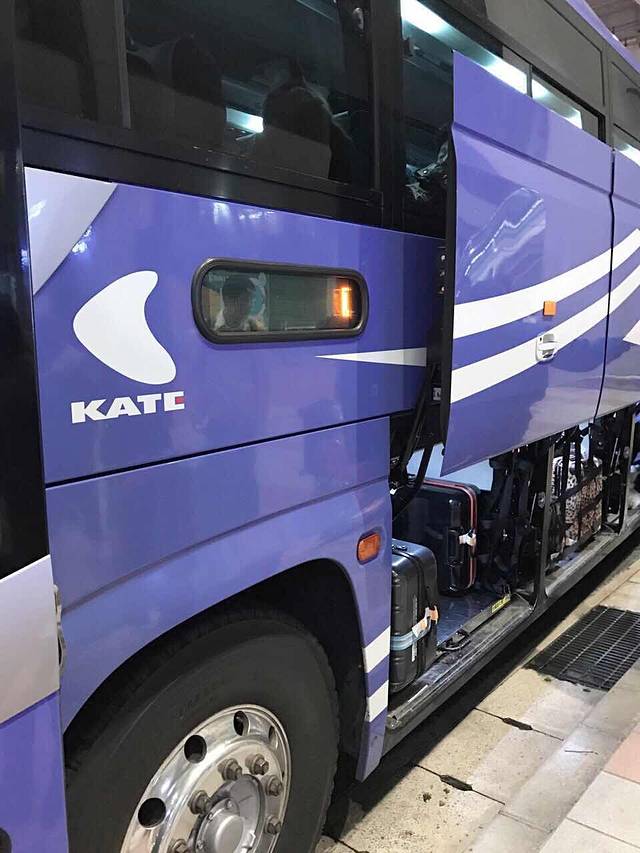 所以我就在咨询处的工作人员的指路下,出了机场大厅,在白菜同学的远程翻译帮助下,在5号站台的自动售票机上买了一张到市区的巴士票。