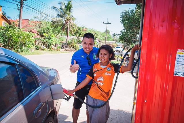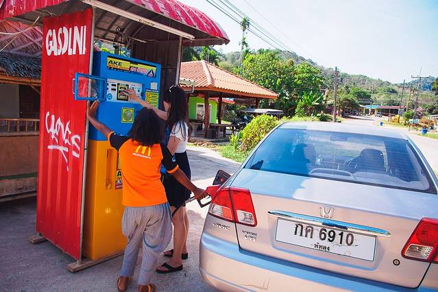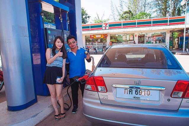 摩托车租给你的时候一般是空挡油,因此拿到车的第一件事肯定是加油,泰国油价不贵,摩托车加40~100B足矣;汽车租给你的时候一般会有存油,注意租车公司会和你确认拿车时候油表指针的位置,意思是到时候还车的时候油不能少于之前,否则会补收油的费用。为避免费用算不清楚,建议还是还车前把油加到之前的油量。