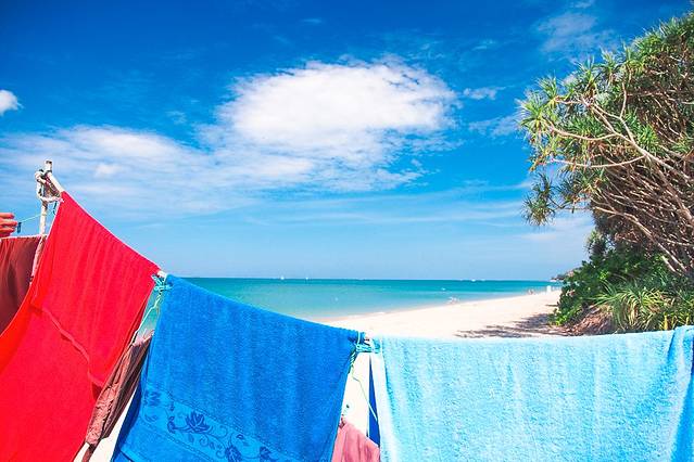 准备退房回甲米,临近正午,大海湛蓝。