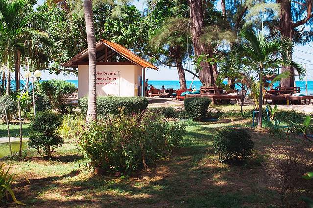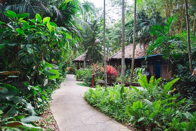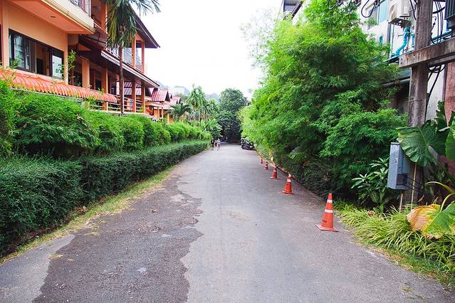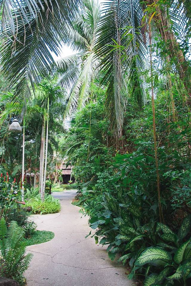 甲米机场很小,有直达奥南海滩的shuttle bus,老式奔驰大巴车。一路畅通无阻,直接送到酒店门口。街道两旁,枝繁叶茂,心情大好。