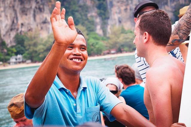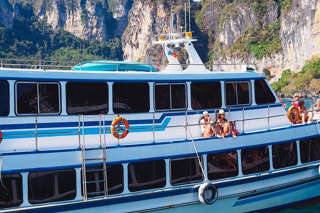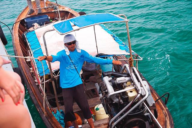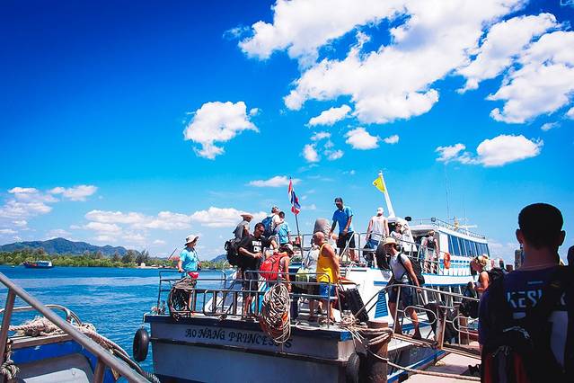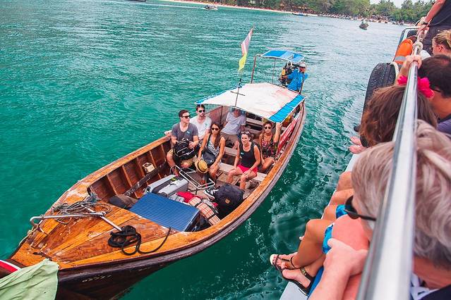 船的航线是从奥南出发,中间会经过莱利海滩,合作的长尾船会把莱利去兰塔的客人送到船上。