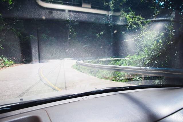 泰国采用的是英式交通法则,道路行驶一律考左行驶,和国内正好相反。本次担任主驾驶的是我的lg兼摄影师(驾龄6年),不过我们两人之前曾经在马来西亚兰卡威开过右肽车,因此这次适应起来是相当的快。说下以前第一次开右肽车的经验,除第一次转弯后习惯性靠游走以外,基本没有犯任何错误,只有多多注意在转弯进出道口时多自行自我提醒靠左侧行驶,不一会儿就能适应。注意右肽车的转向灯在方向盘右侧,左侧是雨刮,这点也是和国内相反的,不要一转弯就习惯性拨左边雨刮哈~