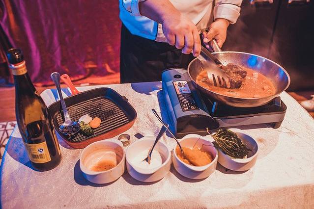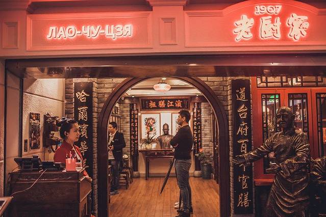 哈尔滨开埠之初,“老厨家”字号创始人郑兴文来哈任滨江关道(俗称“道台府”)主厨,为了适应官员外交宴客的需要,道台府的官膳一直华洋大菜共置一席,既合适老外们的西餐口味,又加入了中国菜的特色元素,形成了以“中西合璧、南北交融”为基本特点的饮食体系。他们创制出的锅包肉、熏卤鸭、啤酒鱼、马上封侯、加官受禄、天龙赐福等名菜,可以说是哈尔滨饮食文化重要的一个内容。