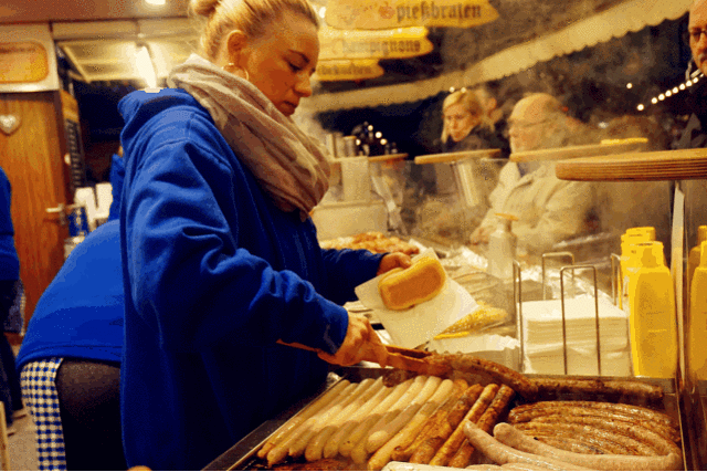 之所以叫德国大香肠,就是你想的那样,德国出产,形状又粗又长。因为圣诞市集始于德国,所有的来的大香肠就流窜到全世界的每个圣诞市集了。