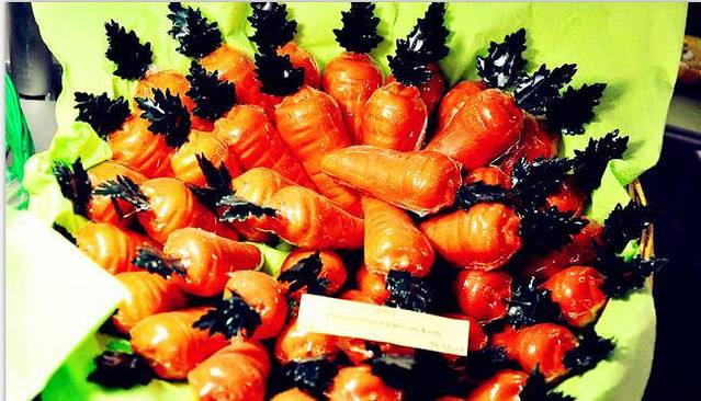杏仁膏是欧洲各国传统的新年糖,糖果的质地非常细腻,可塑性强,可以做出各种有趣的小球造型,外层包裹巧克力和糖霜。通常是以杏仁膏作内馅,而近两年开始流行用整只苹果当内馅,经常会在苹果糖上做各种造型,比如愤怒的小鸟、kt猫等,小朋友看到就走不动路啦。